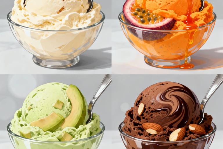 ✅ Aprenderás el paso a paso desde lo más básico hasta lo más avanzado para preparar una gran variedad de helados artesanales cremosos como: